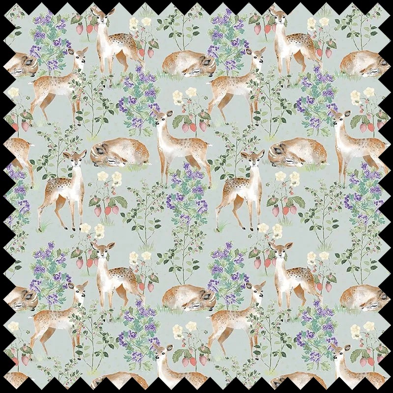Descoperă universul fermecat al materialului textil decorativ Anca's Fawn In Green, o creație realizată cu pasiune și atenție la detalii pentru a aduce bucurie și vitalitate în orice spațiu destinat celor mici. Designul desenat manual surprinde scene pline de magie, cu prieteni blănoși ai pădurii, în nuanțe revigorante de verde, galben și accente calde, transformând fiecare colț într-o poveste vie și inspirațională. Fiecare element al patternului a fost gândit să stimuleze imaginația, invitând copiii într-o lume plină de aventuri și zâmbete.