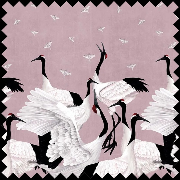 Grus Japonesis in Pink Material Textil Decorativ